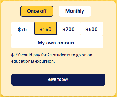 $120 could pay for 28 students to go on an education excursion.