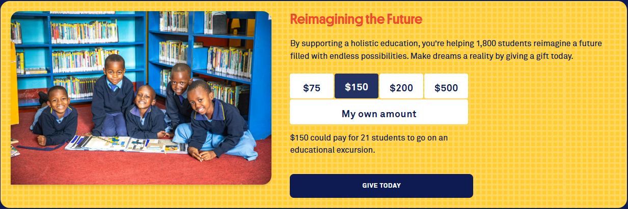 By supporting a holistic education, you’re helping 1,800 students reimagine a future filled with endless possibilities. Make dreams a reality by giving a gift today.